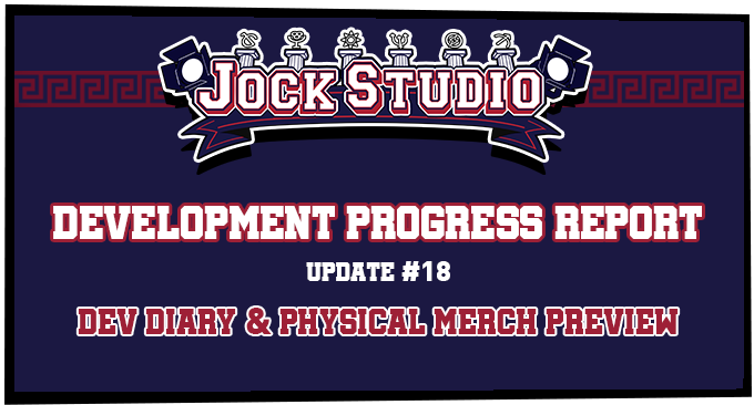 Fellow Olympians, it’s time for another monthly development update for Jock Studio, featuring Physical merchandise news as well as a jam-packed Development Diary! Please read the full post for details!