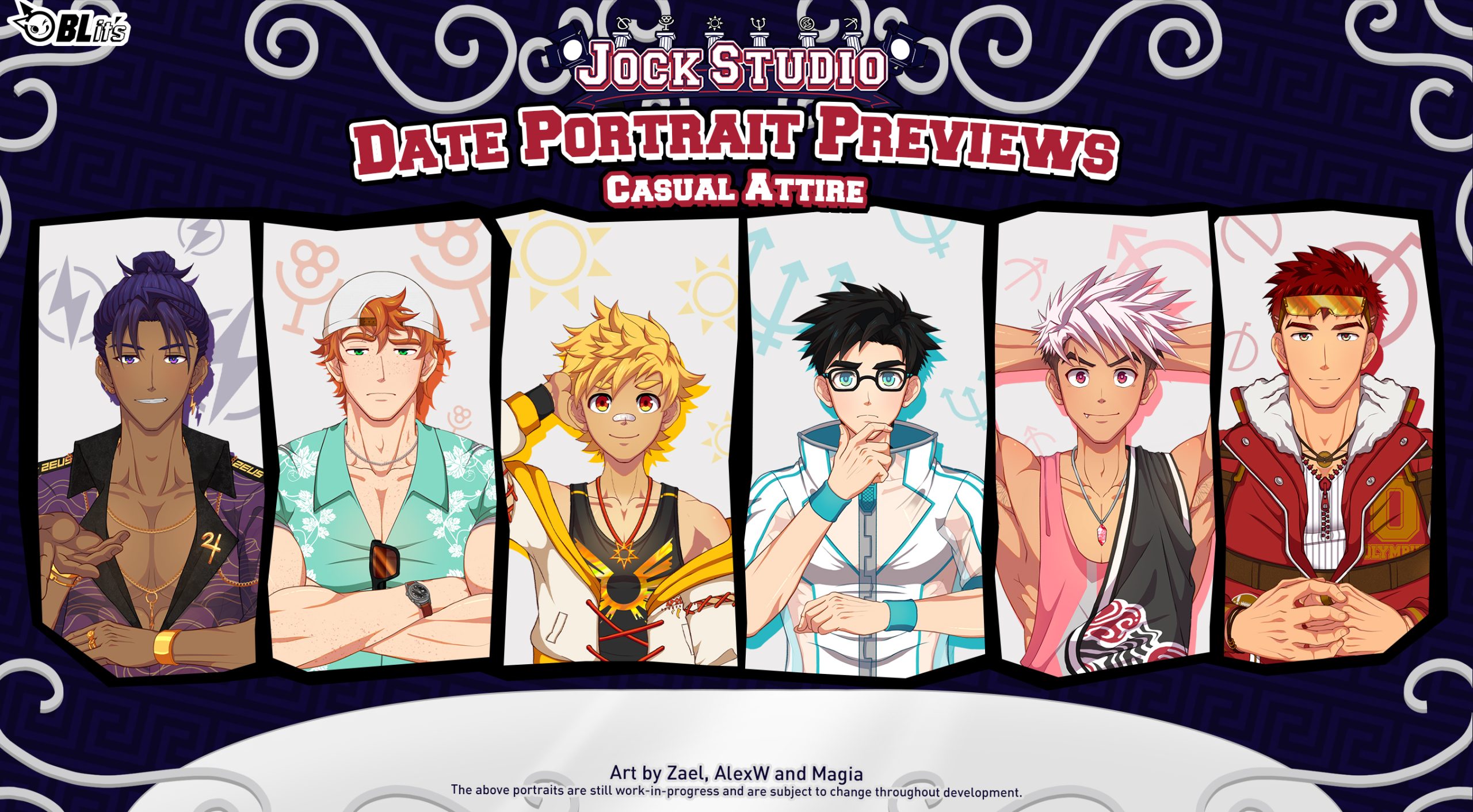 Made by Zael, AlexW and Magia, these Date Portraits will be featured in the Date Activity, letting you get up close and personal with each of the Jocks, read their expressions, and poke at them for reactions!