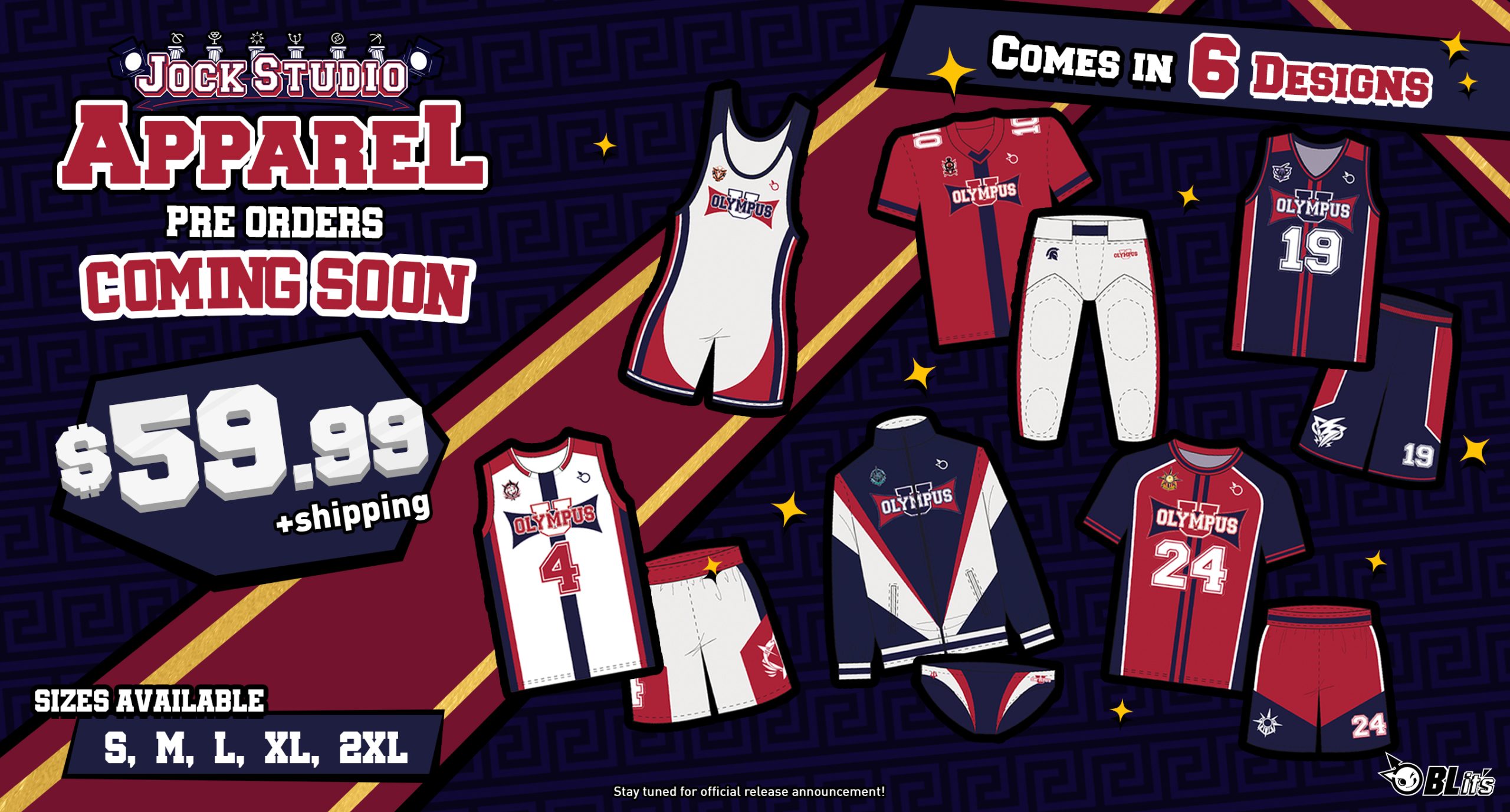 First up, we have an exciting new merchandise announcement – Olympus University Sports Uniforms, featuring one for each of our favorite Jocks! Check out a preview of the upcoming merchandise below: