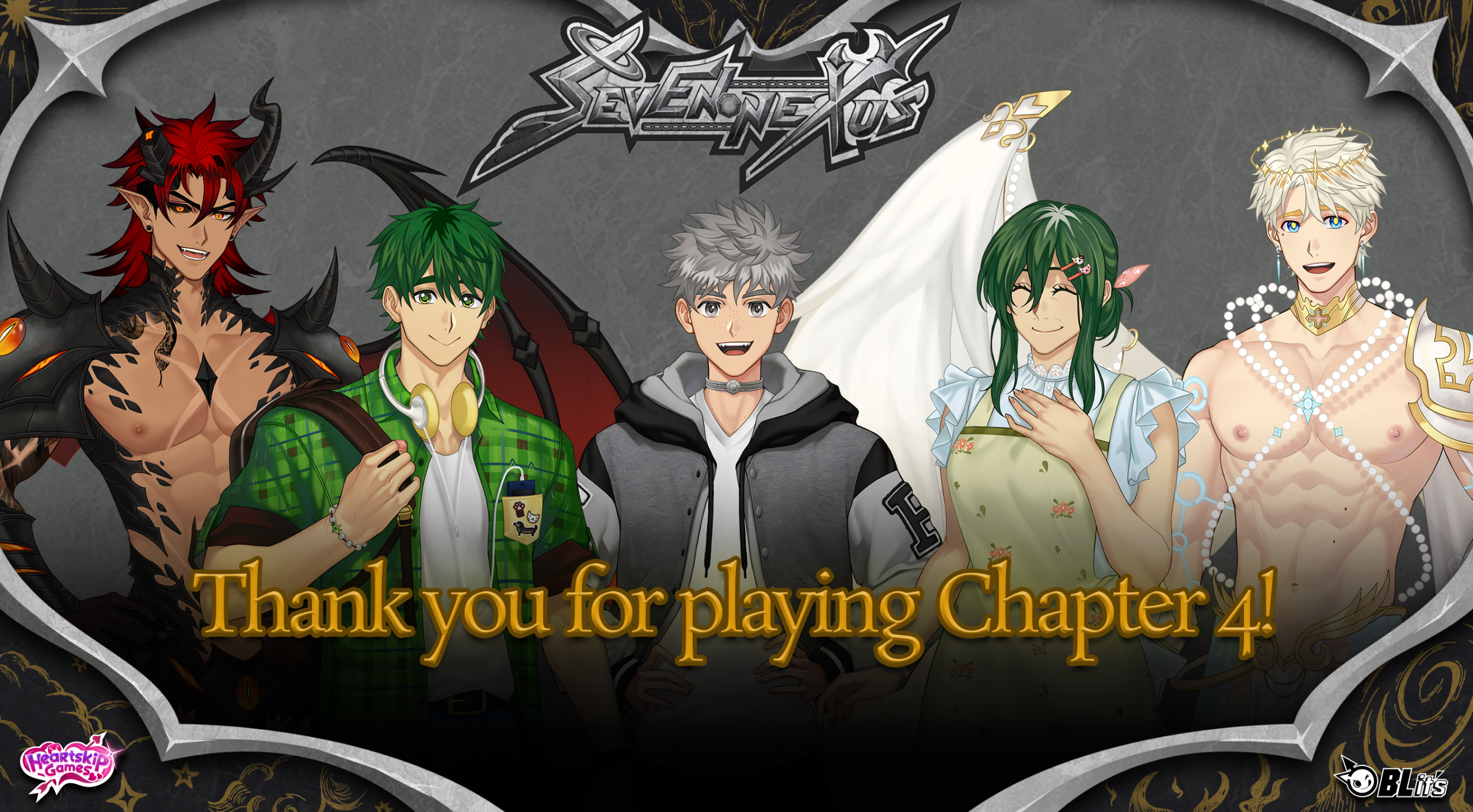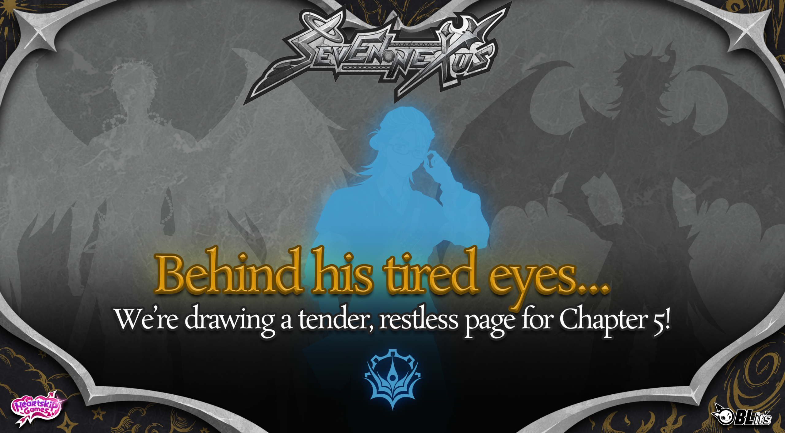 First of all, thank you so much for supporting Seven Nexus and playing Chapter 4! It was our biggest chapter yet, and it brought a lot of new things into Grey’s world. We introduced four new side characters: Kayden and Gloria, whose bond was at the heart of the Trial, and the Archangel and Overlord, who stepped in as dangerous obstacles to Grey’s growing connection with Haelo and Horne. Chapter 4 also included four new CGs (in addition to the four sex scenes), each tied to a major turning point in the Guardians’ routes. These were the moments we felt needed to be shown, not just described, because of how much they change Grey’s relationship with Haelo or Horne.
