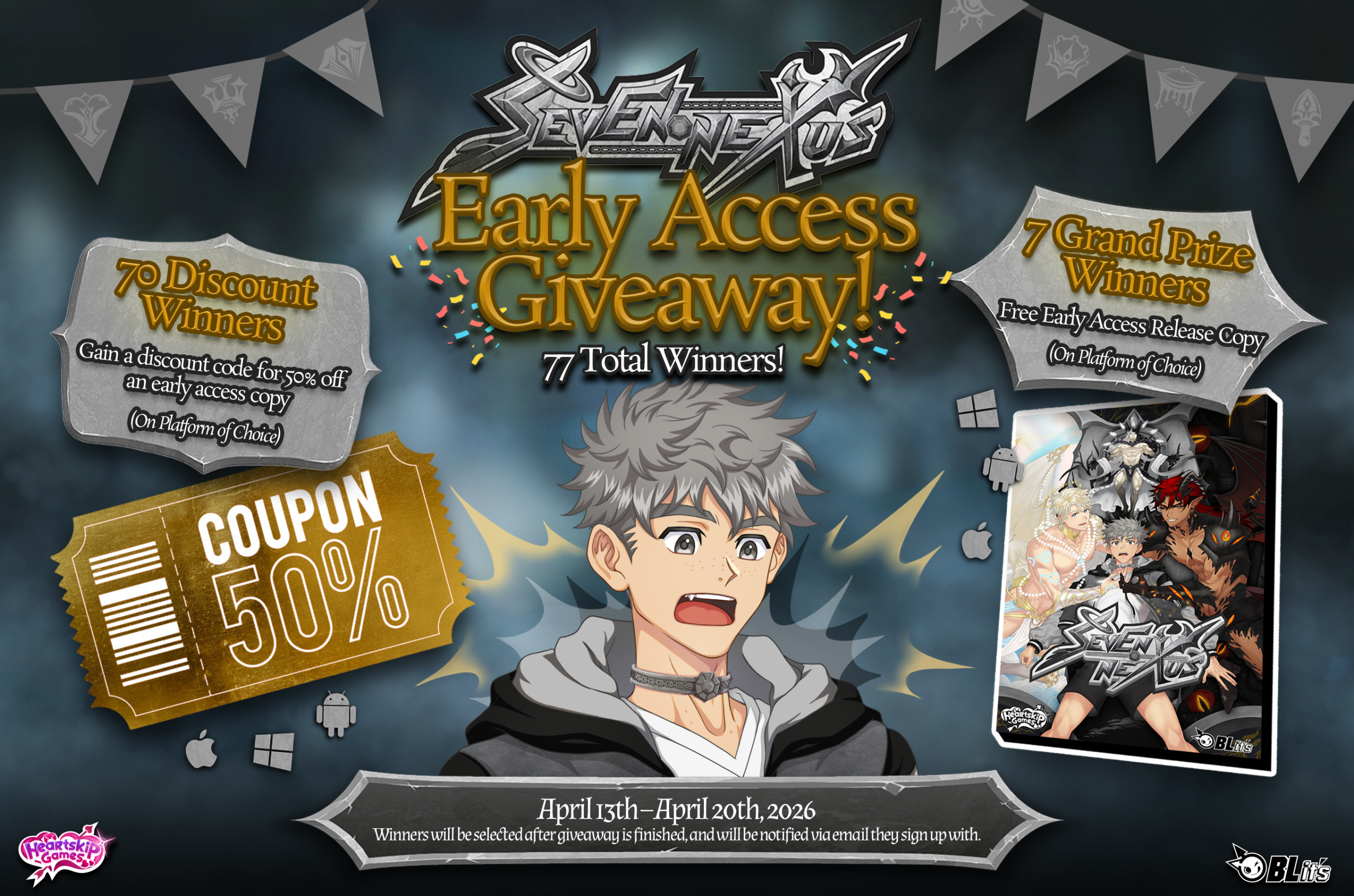 - Seventy Winners will receive a discount code for 50% off a purchase of Seven Nexus Early Access on the BLits Website!